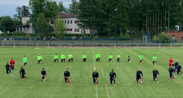 Οι ποδοσφαιριστές και το τεχνικό επιτελείο της Πάφος FC κατά την διάρκεια της προπόνησης γονάτισαν συμβολικά, σε μία κίνηση κατά του ρατσισμού και των διακρίσεων. Δείτε την σχετική φωτογραφία:
